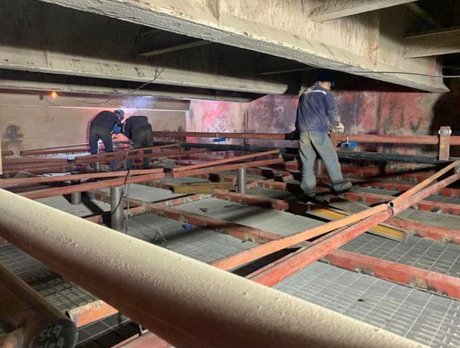 截止4月29日,工程技术部(等级检修事业部)承接的麟北发电#2锅炉烟气脱硝改造工程在工作量大、人员紧缺的情况下,经过现场积极协调、合理安排工期,脱硝装置平台安装、SCR催化剂安装及密封条焊接、12台吹灰器安装工作已完成。