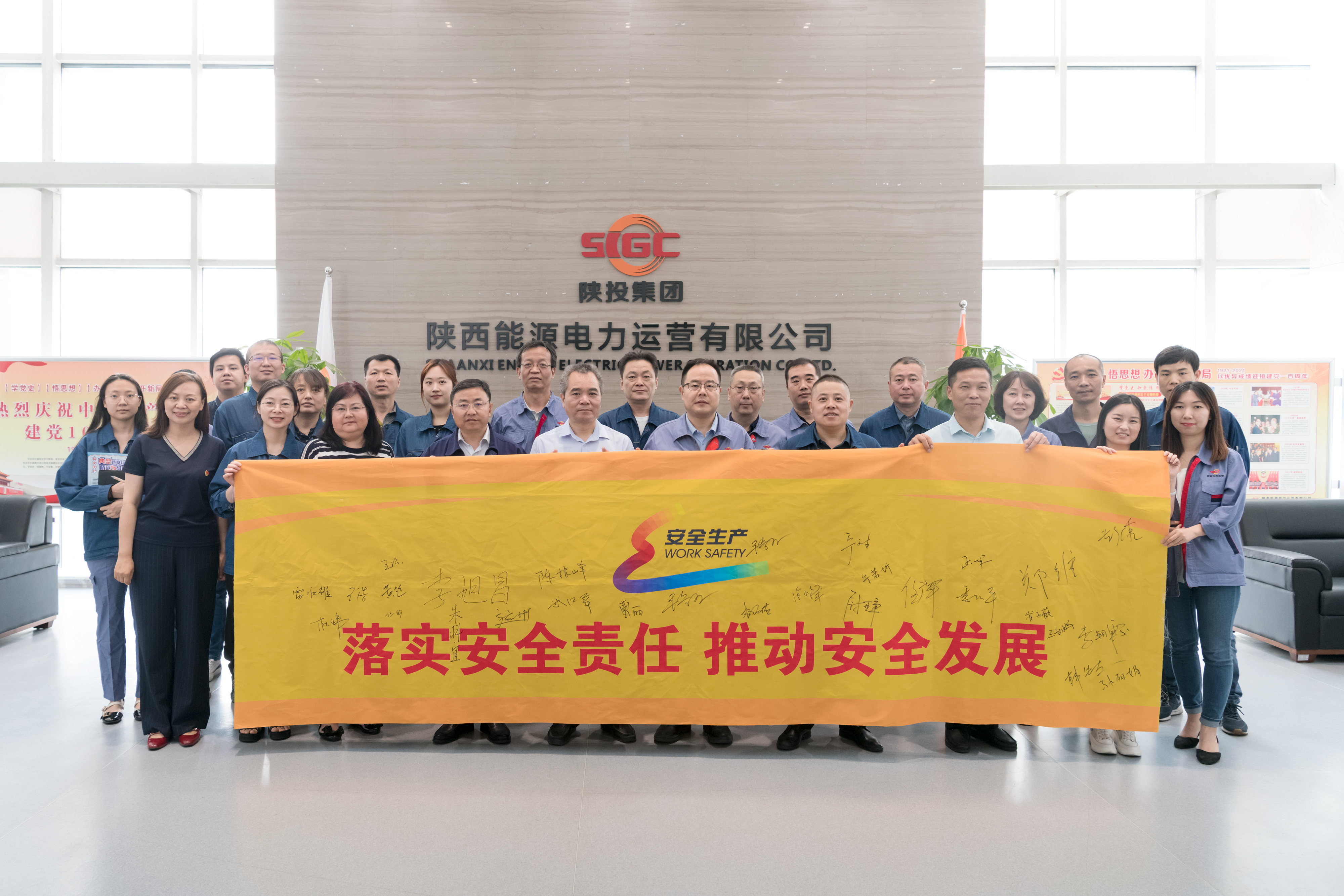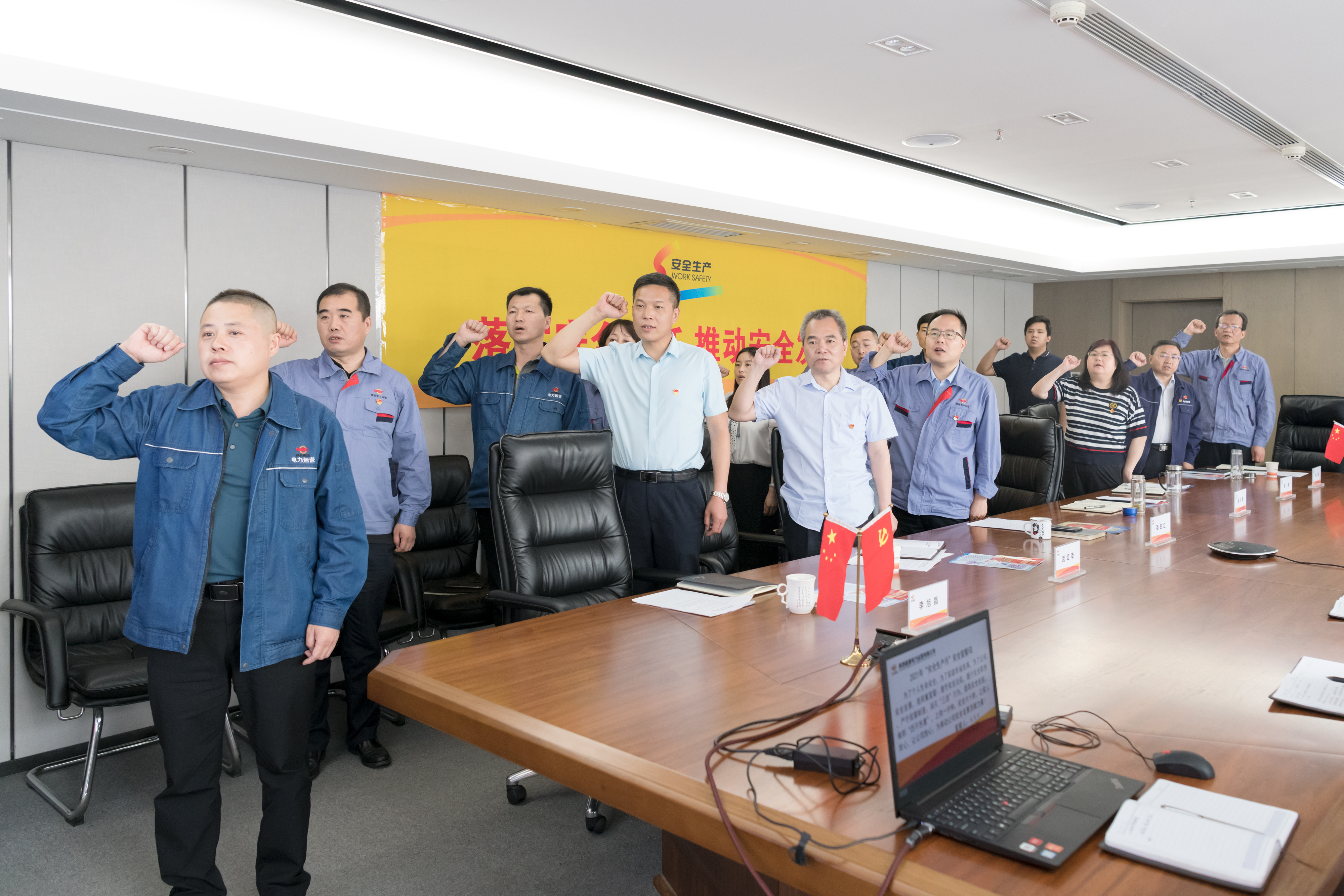 公司总经理张小锋带领参会人员作出了安全承诺宣誓,领导班子成员为主会场参会员工发放了“安全生产月”宣传资料,并在“落实安全责任,推动安全发展”主题横幅承诺签名,以此表明争做安全生产践行者的决心。