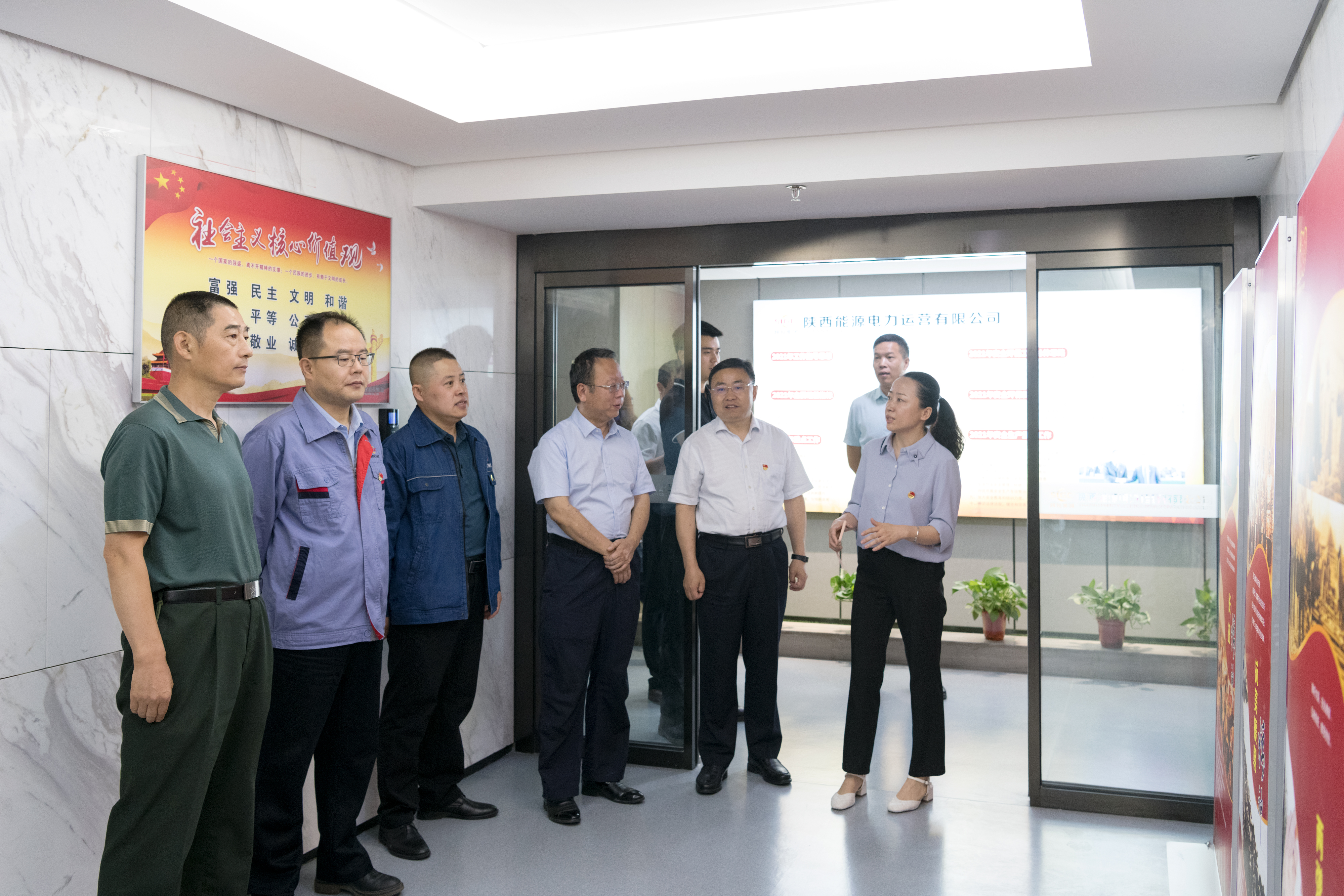 会后,巡回指导组人员参观了公司党史学习教育楼宇宣传廊,并对党史学习教育相关资料进行了检查,就推进工作的举措进行了交流。