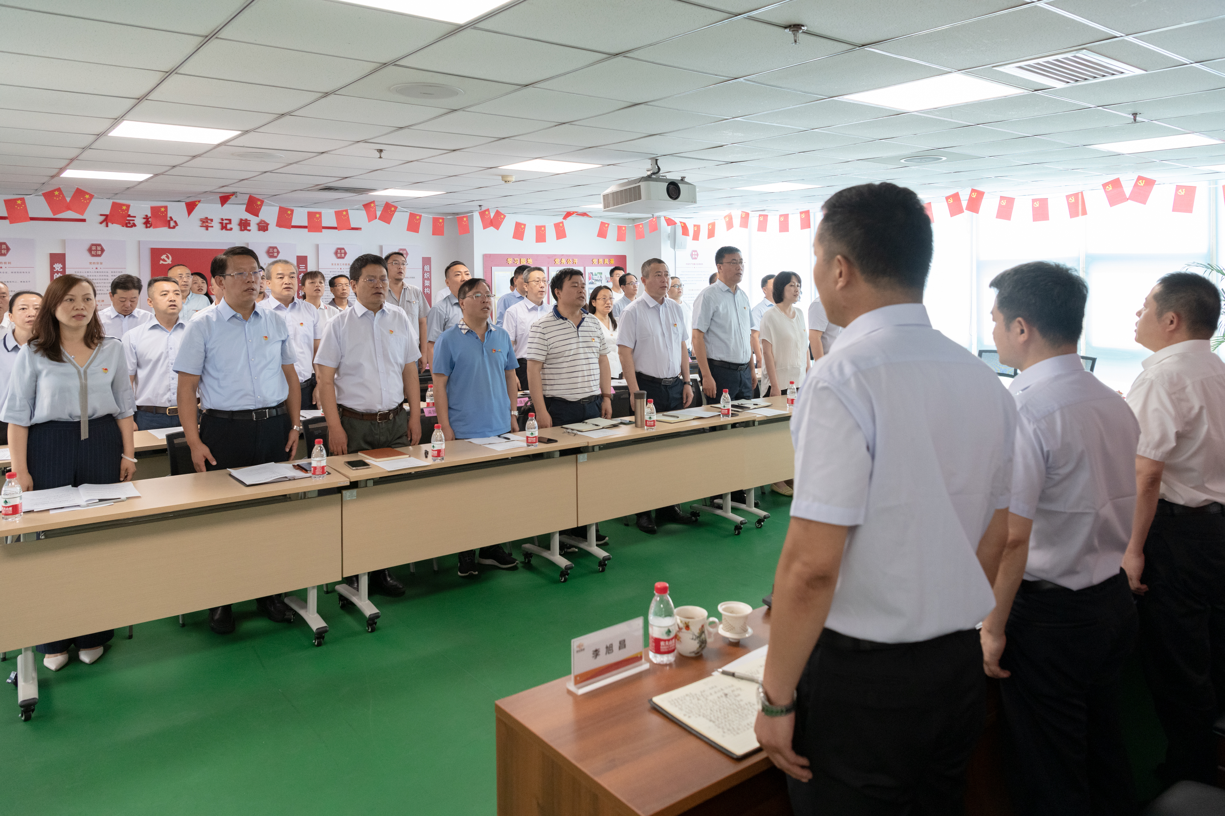 大会在全场党员干部职工齐唱《中华人民共和国国歌》中拉开帷幕。面对鲜红的党旗,公司党委书记、董事长毛冬红带领全体与会党员重温入党誓词,回顾对党和人民的承诺,表达对党的无限忠诚。