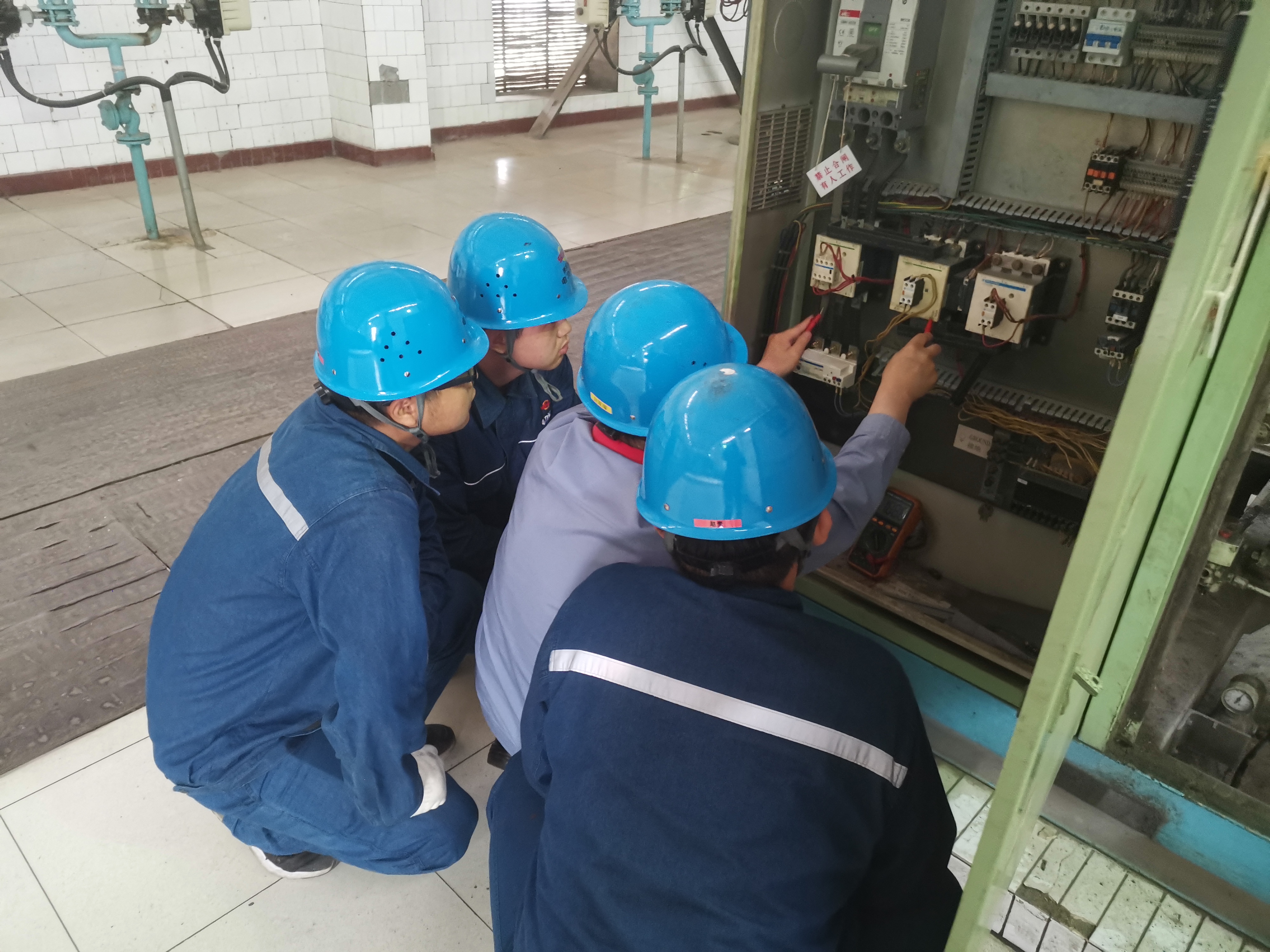 培训课上,控制班班长刘军耀对空压机二次回路进行了讲解,以提问的方式详细阐述了电机星型三角型电路的原理和启动过程及电机反转时的处理方法。在检修现场,刘军耀带领学员认识了专用的电机更换工具和使用方法,在更换空压机时让学员摸索怎样独立接线该,如何保证安全且正确的接线,在听取了学员的回答后一一给出了解决方案。