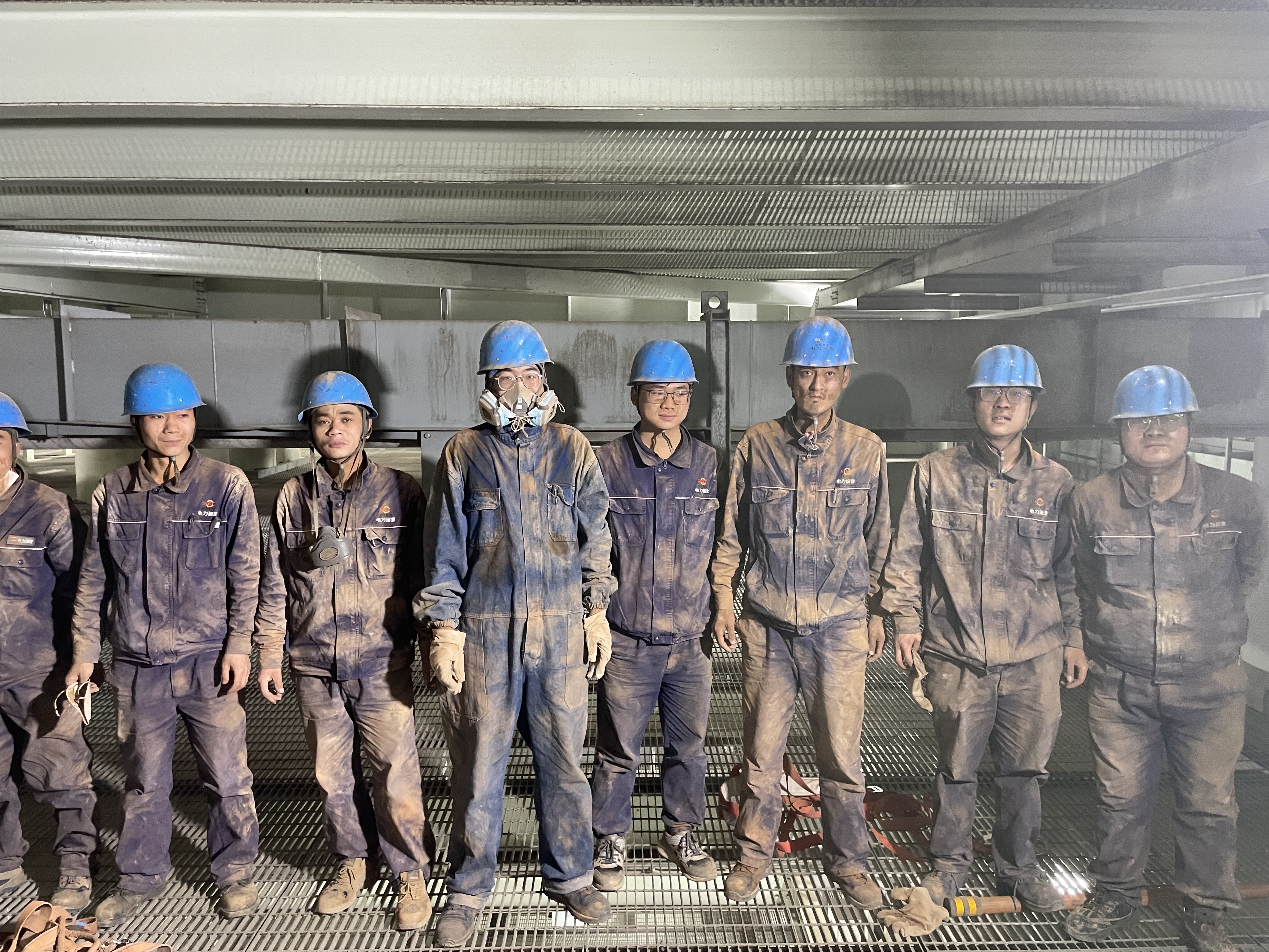 赵石畔煤电#1机D修过程中,发现水平烟道中段再热器因燃烧不充分产生大量积灰,如不及时清理,会引起再热器受热不均爆管。锅炉专业组织全班力量进入炉膛清灰。清灰现场环境十分恶劣,高温伴随灰粉弥漫,这群可爱的大学生不怕脏、不怕累,冲在最前面,出来时一个个都成了“灰人”,完全看不出平时的模样,衣服也都被汗水浸透,但他们脸上还是挂着微笑。因为他们的不懈努力,清灰任务按时完成,保证机组能够按时启动。