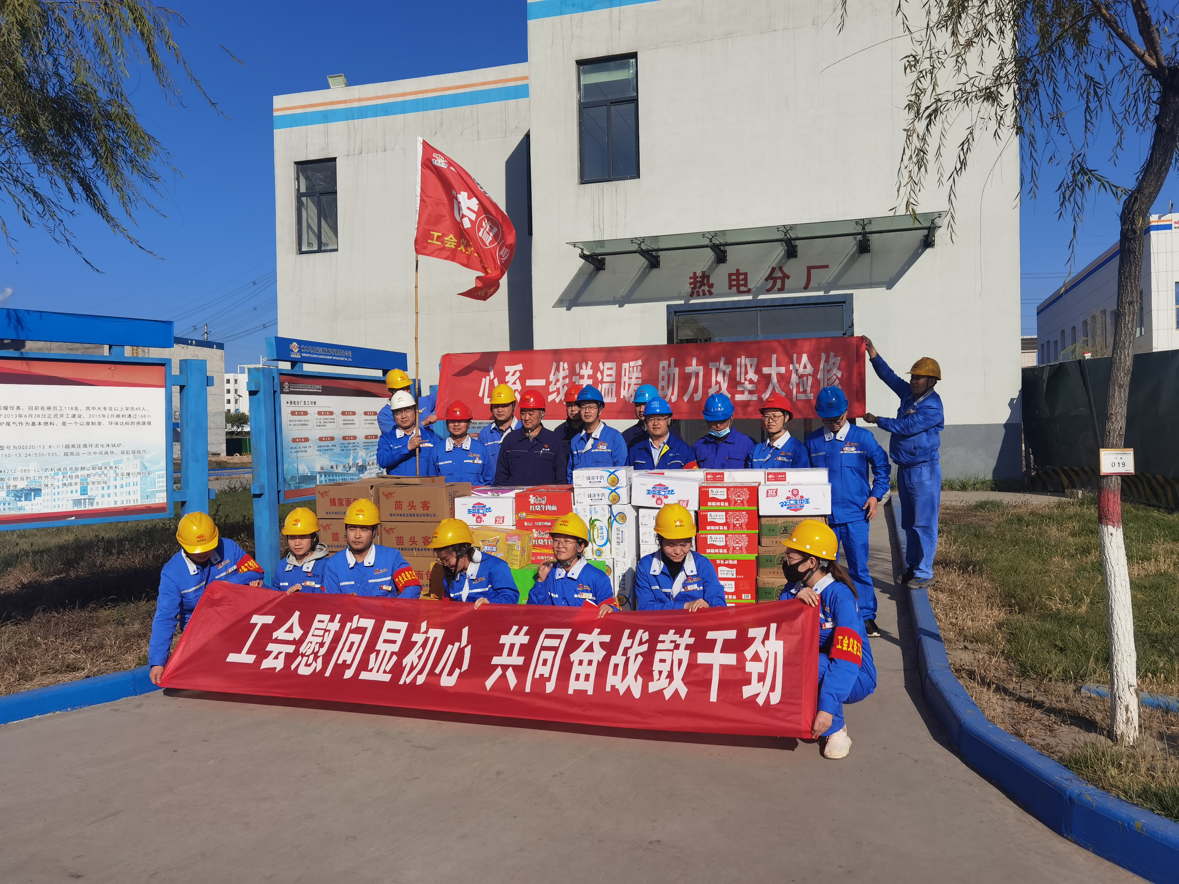 10月24日,公司承揽的神木电石热电分厂检修项目正式启动。神木电石工会来到检修现场进行慰问,为我公司奋战在检修一线的人员准备了工作餐与饮料,现场洋溢着浓浓暖意。