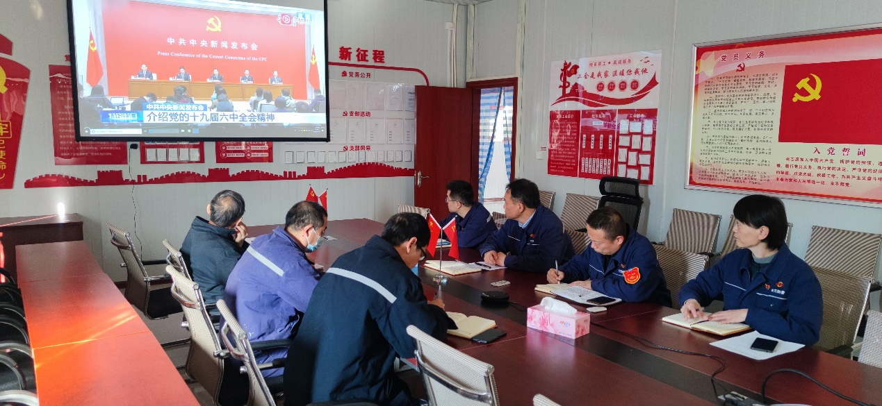 11月18日,商洛项目部党支部召开党员大会,专题传达学习党的十九届六中全会精神。支部书记带领全体党员逐字逐句研学《中国共产党第十九届中央委员会第六次全体会议公报》,组织全体党员观看了全会精神解读视频。