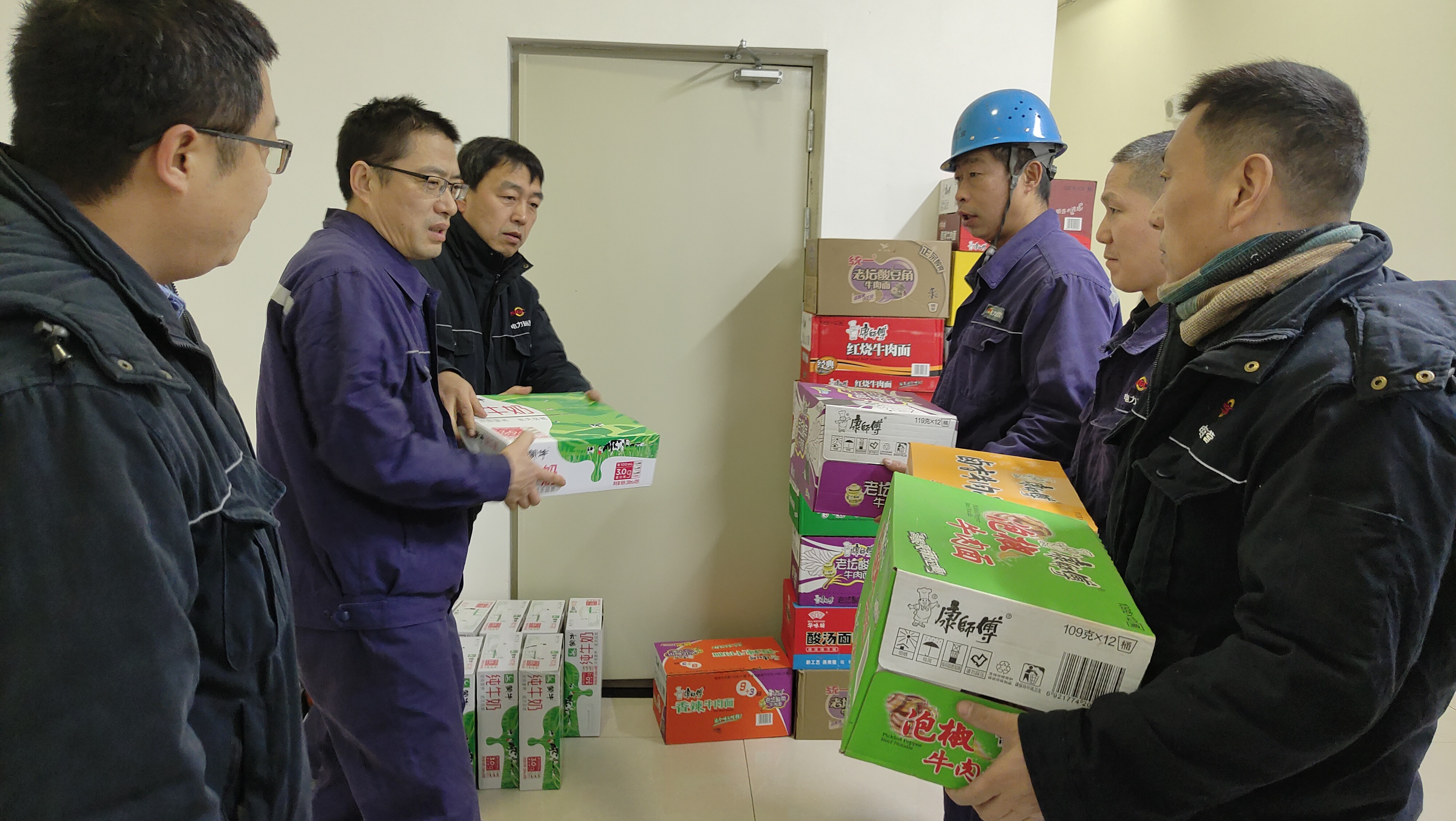 清水川项目部党支部及时采购生活物资,慰问战斗在保电保热第一线的党员以及职工。