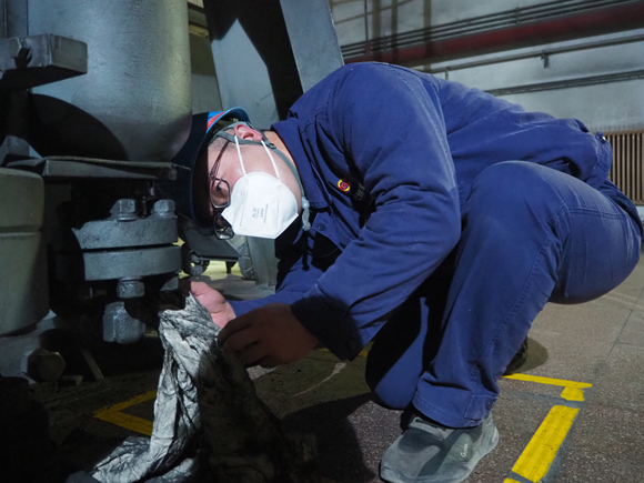 在检修现场,各种管道“丛林”、大大小小的设备中,点缀着反光条的“运营荧光蓝”随处可见。各班组深入贯彻落实公司“质量提升年”要求,深化设备精细化管理,做到每个环节“回头看”确保质量,班后做好工作面的现场清理确保整洁。