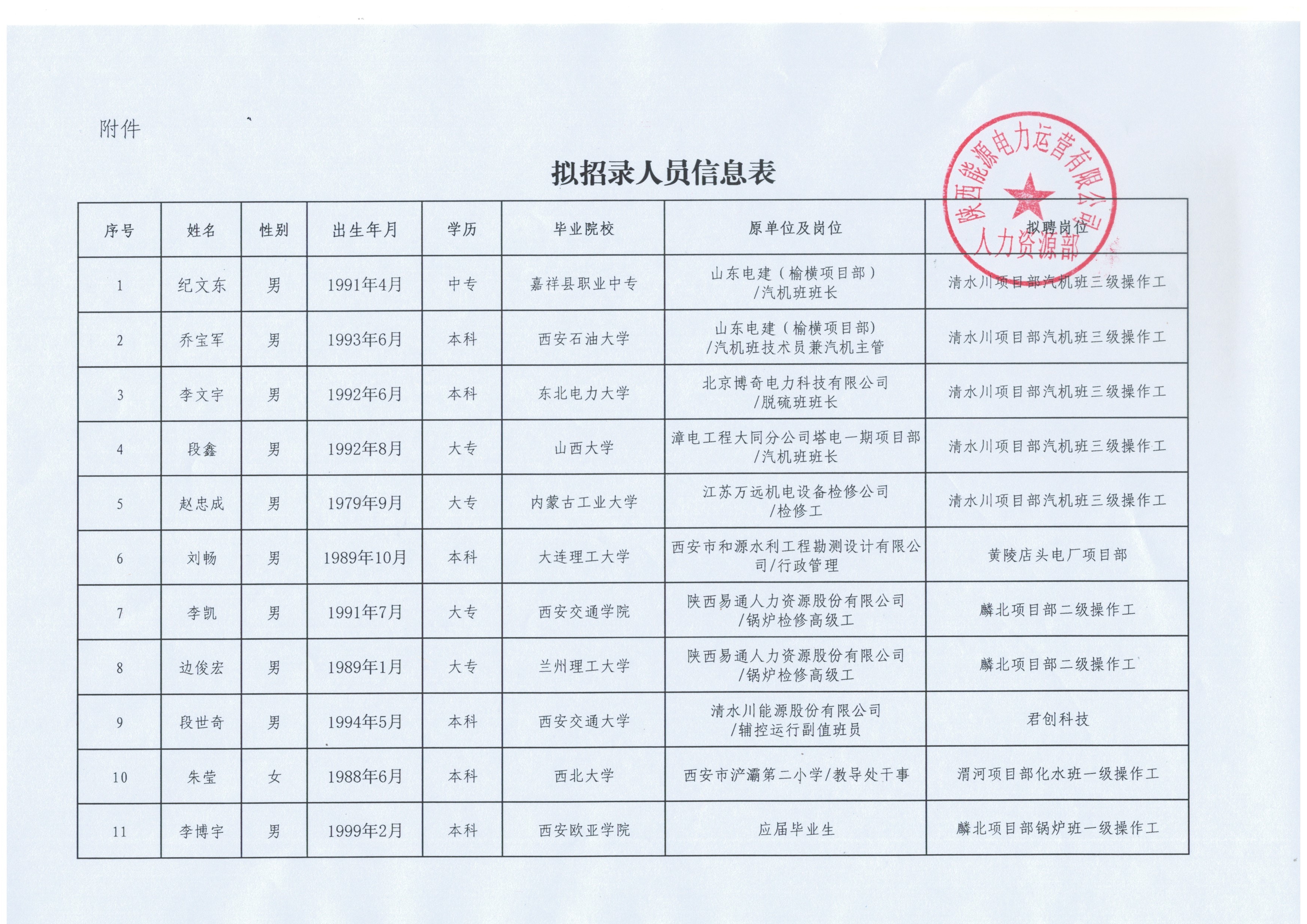 关于拟招录纪文东等11人的公示