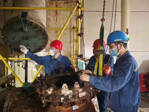 工会主席韩宏友深入渭河项目部#3炉省煤器抢修、#5机组高背压转子更换工作现场,检查现场安全措施并慰问坚守工作岗位的干部职工。