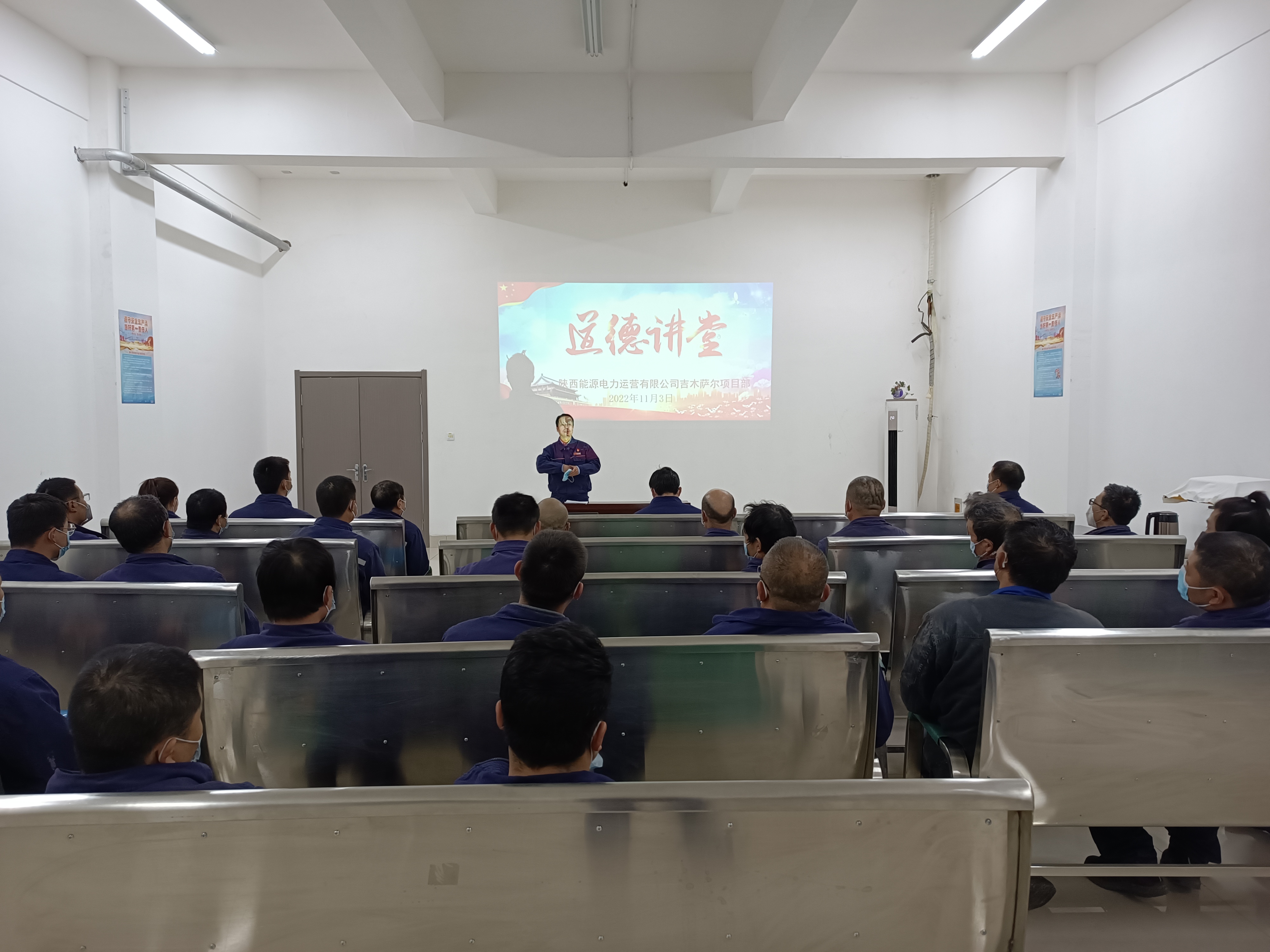 11月3日,吉木萨尔项目部开展了“敬业奉献”主题道德讲堂活动。本次道德讲堂共分为自我反省、同唱经典、观看视频、论语赏析、模范宣讲和总结点评六个环节。