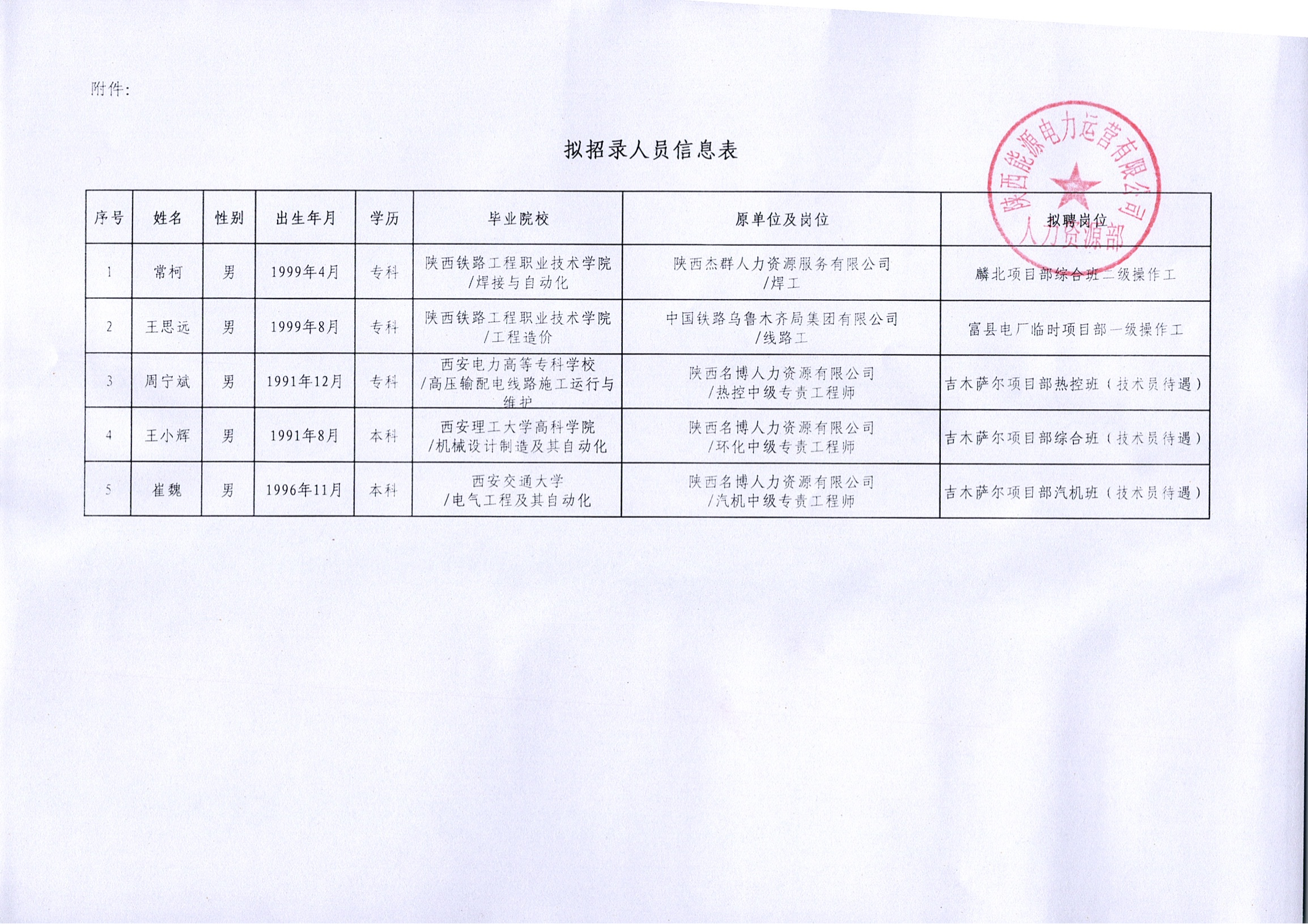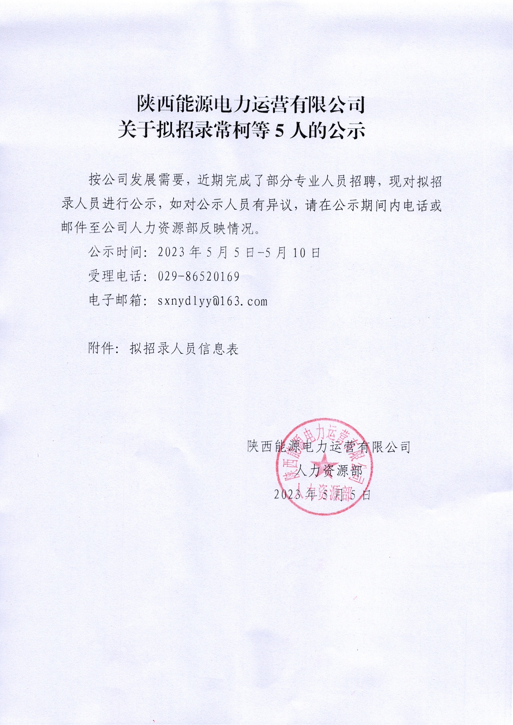 关于拟招录常柯等5人的公示