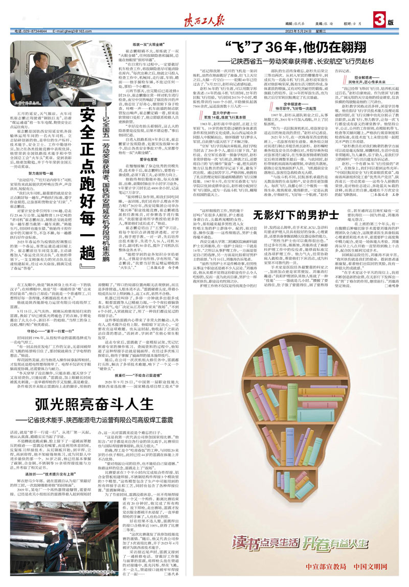 陕西工人报:弧光照亮奋斗人生——记省技术能手、高级焊工雷震