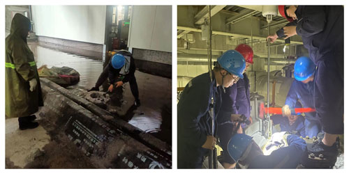 黄陵店头电厂#1机组汽泵再循环管道止回阀前管道法兰垫子泄漏造成厂房内漏水,影响机组安全运行。接到消息后,项目部值班人员立即奔赴现场清理#6皮带积水,保证输煤设备安全。经全体人员连续作业5小时,圆满完成防水、疏导漏水、清理积水任务,保证了机组安全运行,并在机组具备更换止回阀法兰垫子条件后再次投入抢修工作。