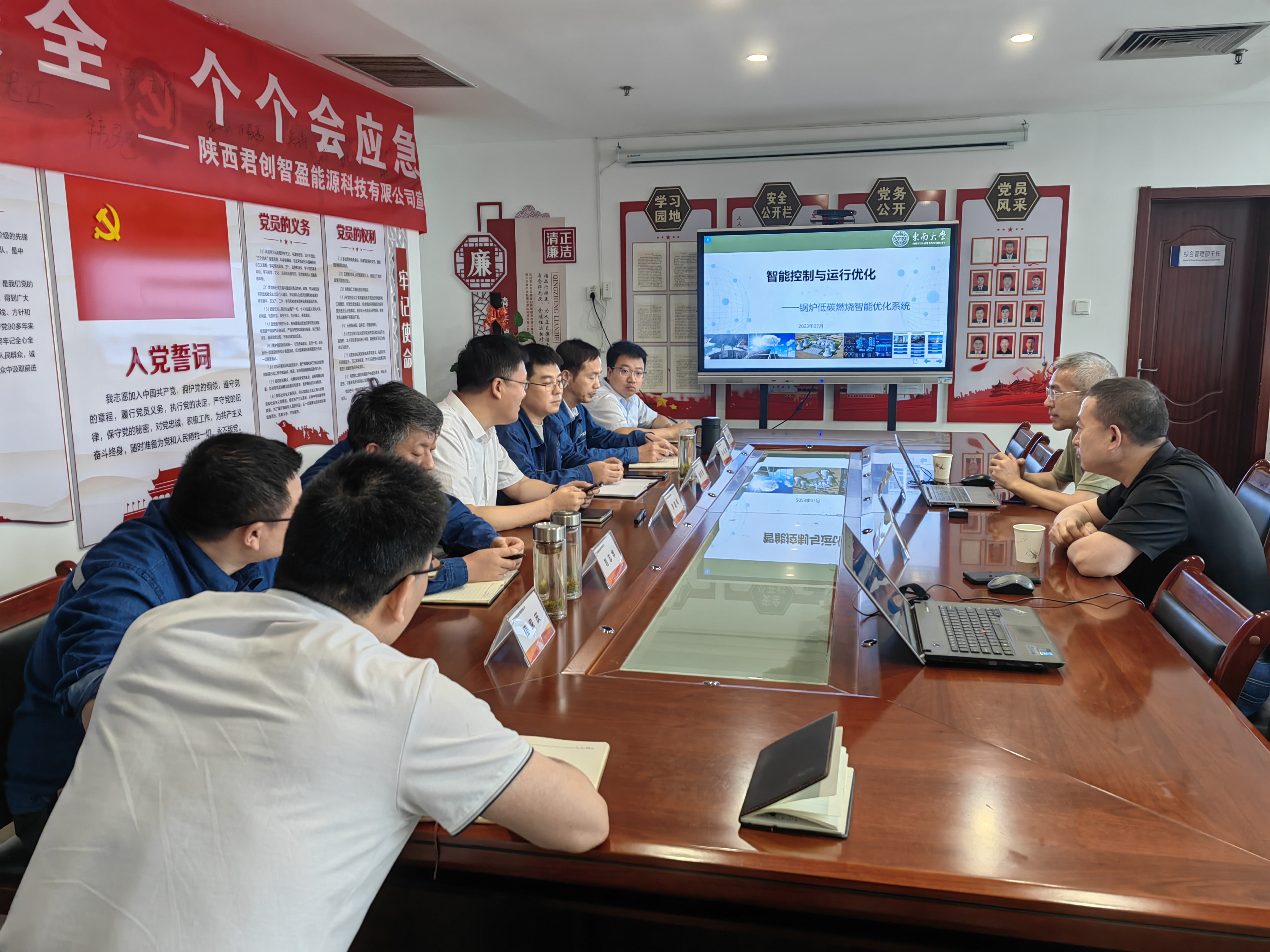 日前,东南大学能源与环境学院雎刚教授一行到君创科技进行锅炉低碳燃烧智能控制与运行优化技术交流。