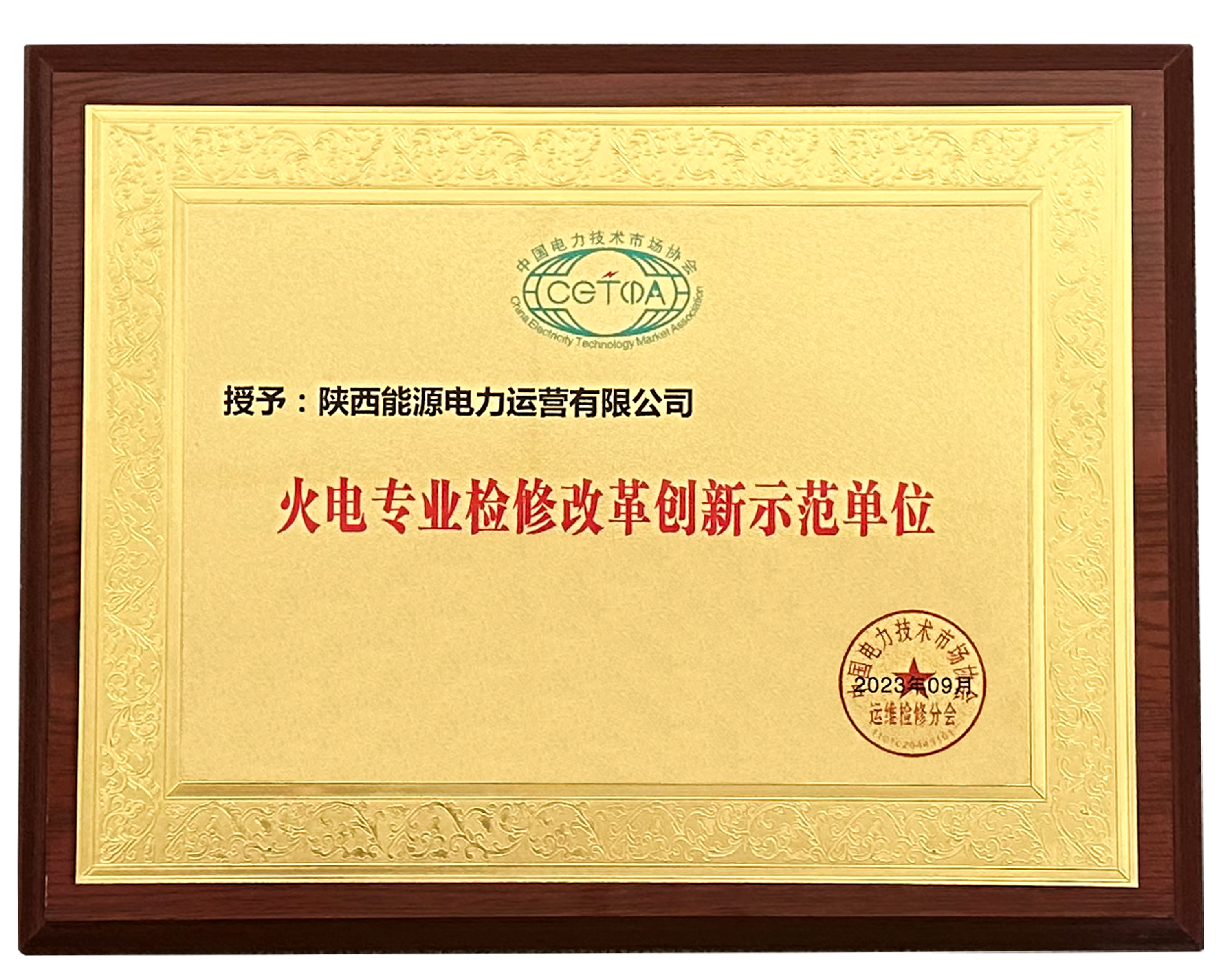 日前,公司获得中国电力市场协会运维检修分会颁发的“火电专业检修改革创新示范单位”荣誉称号。