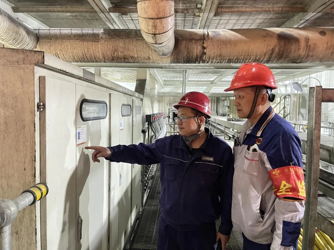 “师傅,你歇一会,我来!”这个穿梭于设备之间、汗水与灰尘交织在脸上的是灰硫检修班青工史普州正帮助师傅完成粗灰库内部清灰作业,两人紧密配合,可谓是最默契的“CP”组合。
