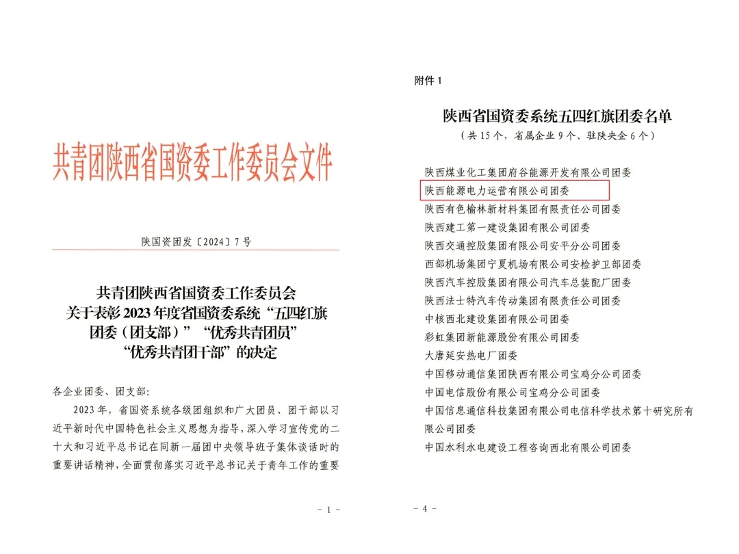 近日,公司团委荣获2023年度“陕西省国资委系统五四红旗团委”称号,是本次集团系统唯一获此殊荣的单位。