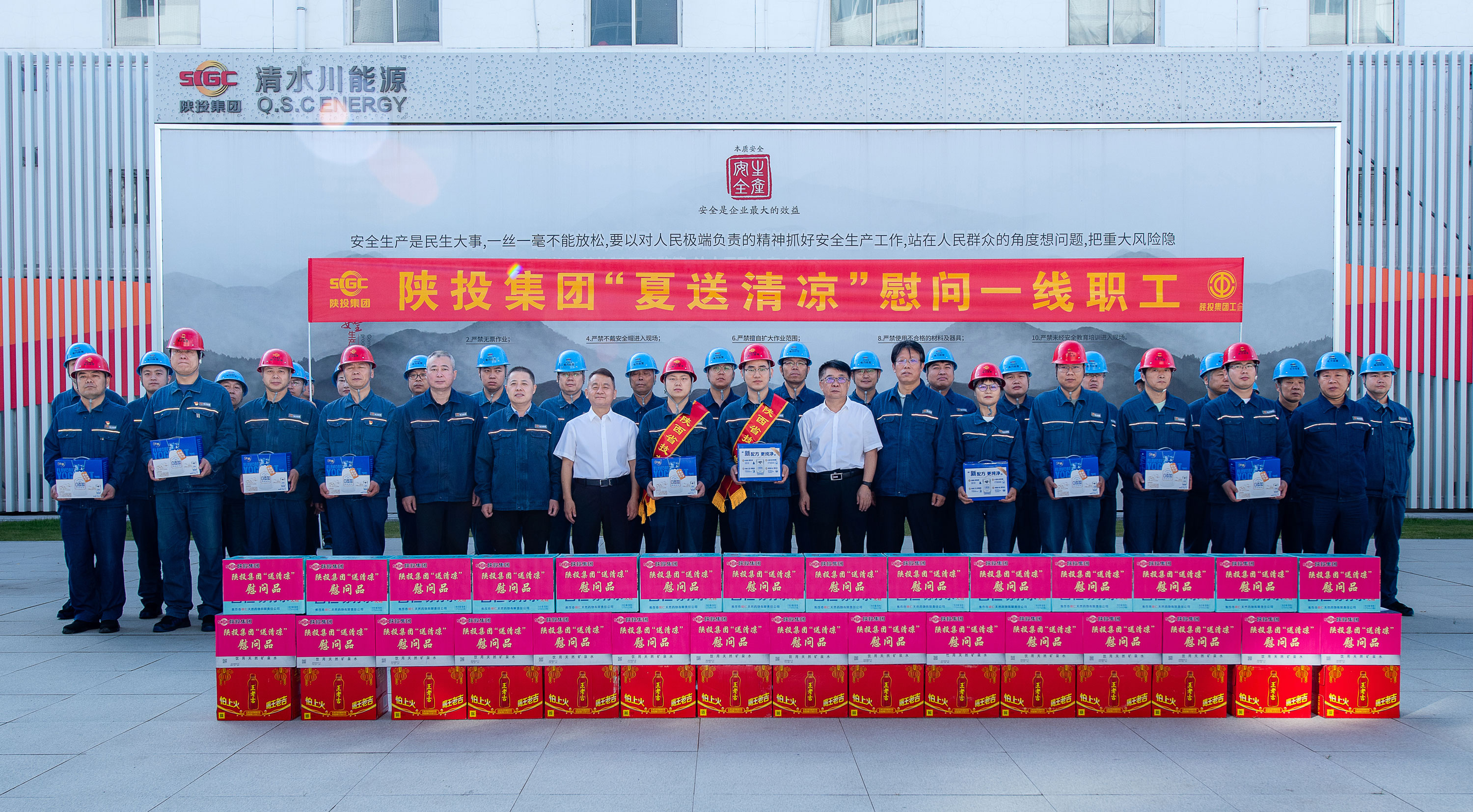 7月13日上午,集团党委书记、董事长李元,集团党委委员、陕西能源总经理王栋一行到公司清水川项目部慰问。
