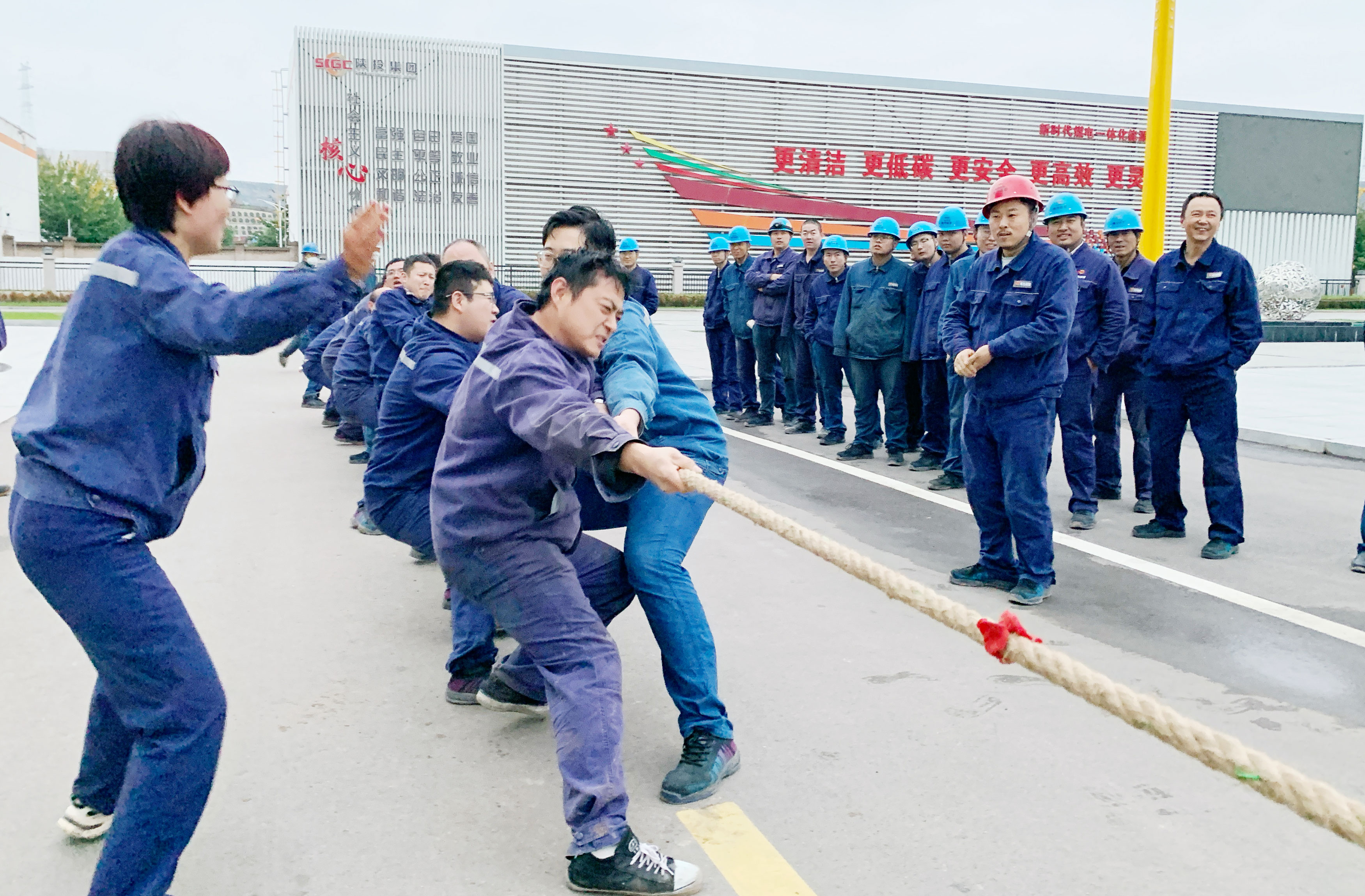 “起绳、拉紧。预备、开始!”随着裁判一声令下,激烈而又振奋人心的拔河比赛在欢呼声中进行。各专业参赛队伍剑拔弩张,参赛队员气势如虹,大家双手紧握麻绳,放低重心、身体后仰,用一致的步伐和整齐的口号诠释着“一股劲、一条心、一盘棋”的精气神。经过激烈角逐,汽化专业夺得冠军,电气专业和灰硫专业分别摘取亚军与季军。