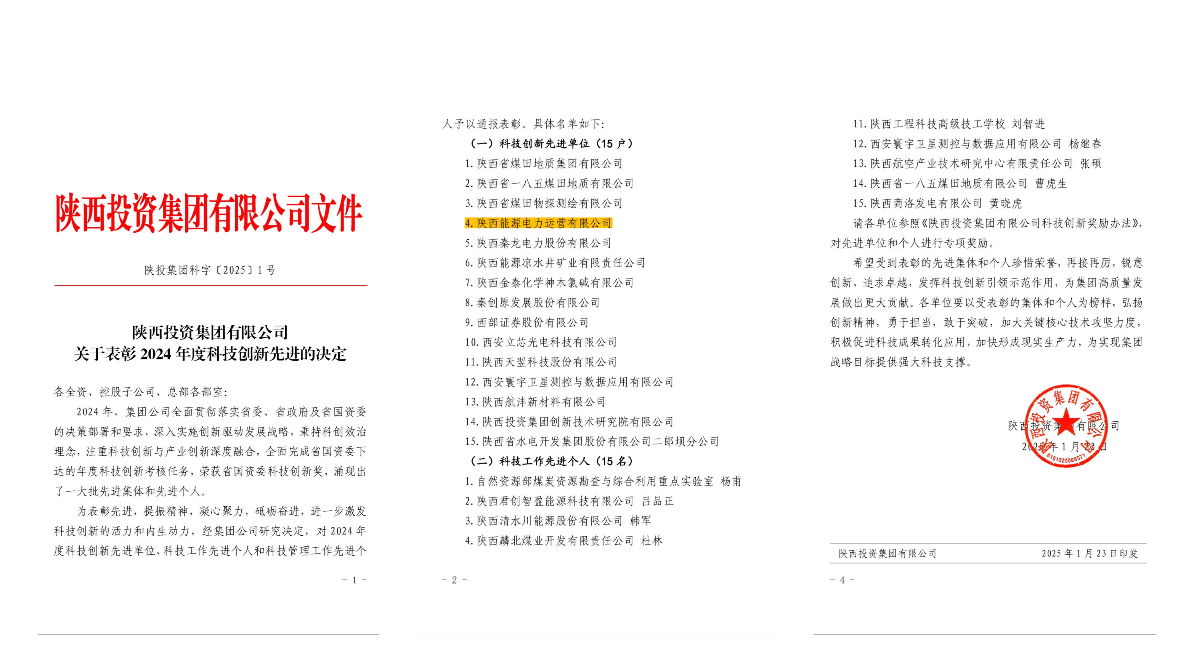 公司以集团“科创效治”理念为引领,坚持创新驱动发展,将创新的理念融入改革发展各项工作,全面激发要素活力、人才活力,加快培育新质生产力,不断开辟新领域、新赛道,培育竞争新优势,获评“陕西省瞪羚企业”“高新技术企业”。君创科技取得“创新型中小企业”“高新技术企业”认证及CMA资质,3项产品入选陕西省重点新产品名录,获政府奖励243万元。