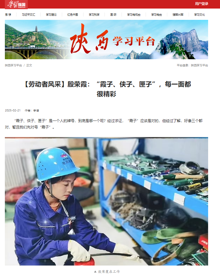 “霞子”真名殷荣霞,电力运营赵石畔项目部电气专业检修工,一个地道的陕北姑娘,1米6左右,梳个大辫子,大眼睛,两腮略带一点风沙红,肤色看着很健康,用含蓄一点的词来表达靓丽程度,就是“穿着工装也不失色”。女人爱美的天性,没有让她因为在轰隆的机房内工作,要接触灰尘、要流汗而停止,“唇彩、眼影、画眉……”时不时还会闪亮登场,伴随她走进厂房一起工作,就像名字中的“霞”字一样,不失靓丽。
