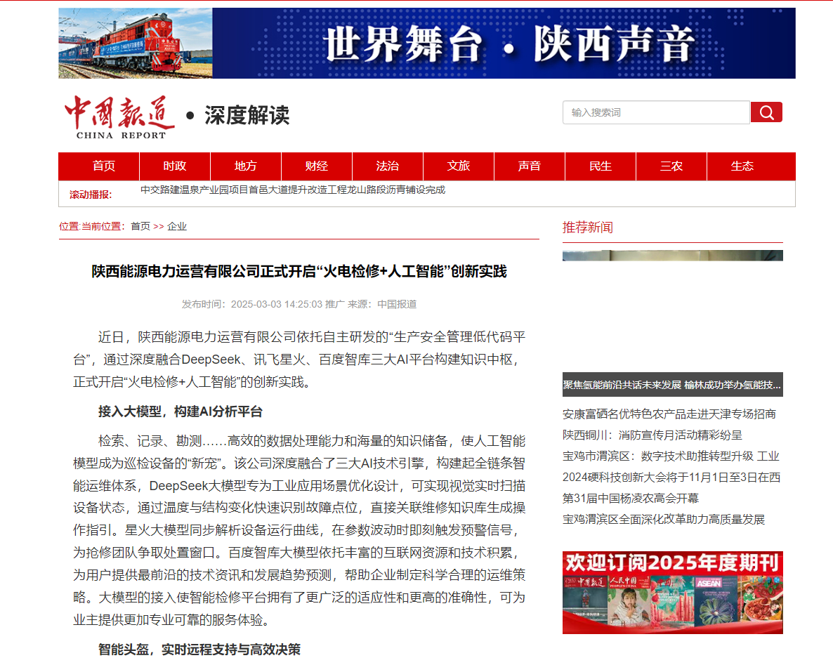 日前,新幸运飞行艇开奖168体彩依托自主研发的“生产安全管理低代码平台”,通过深度融合DeepSeek、讯飞星火、百度智库三大AI平台构建知识中枢,正式开启“火电检修+人工智能”的创新实践。