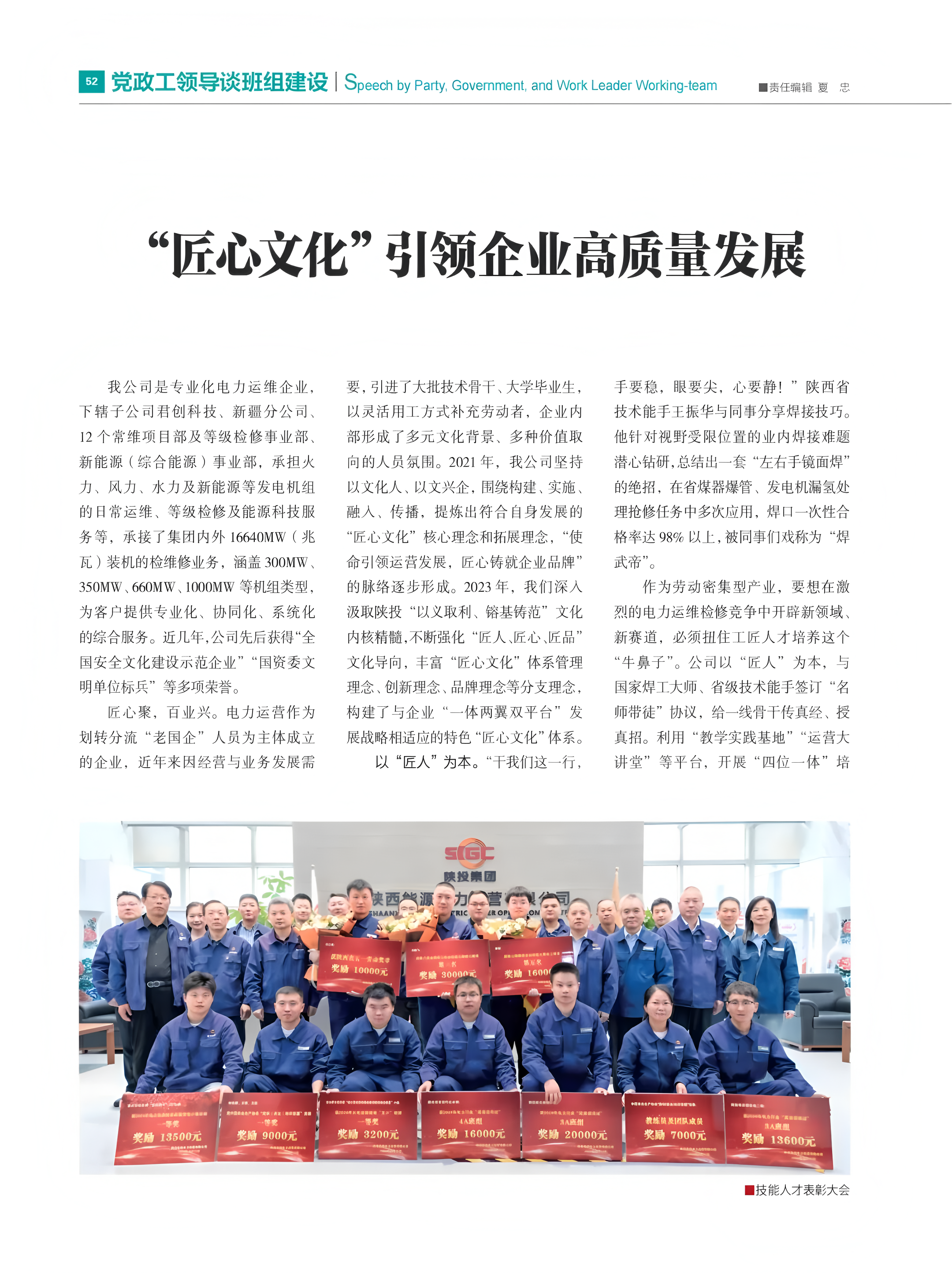 “匠心”不仅是对极致工艺的精细追求,更是对先进科技的虚心学习,公司树立科创效治思维,以“匠心”为镜,鉴机识变、观瞻前沿,不断深挖现场技术难题、熟悉行业前沿技术应用,让科技创新赋能检修维保增“智”提质,多项创新成果斩获全国火电运维检修“五小”创新成果一等奖。电力运营聚焦电力运维、等级检修、能源科技服务及新能源等领域开展课题研究,持续推进技术研发和成果转化工作,8个项目入选省重点新产品开发目录,取得全国电力行业质量管理小组一等奖 2项、陕西省电力行业质量管理小组活动成果一等奖4项、火电运维检修“五小”创新一等奖7项,科技成果不断涌现。陆续开发上线“火电厂检修运维生产安全管理系统"“煤粉自动均衡测控系统”等科技产品,实施“光伏数据分析智能诊断”应用模块,加快低代码生产信息管理平台建设进度和成果应用,将自主知识产权转化为高新技术产品及服务,让更多“匠心”之造融入新型电力系统建设。
