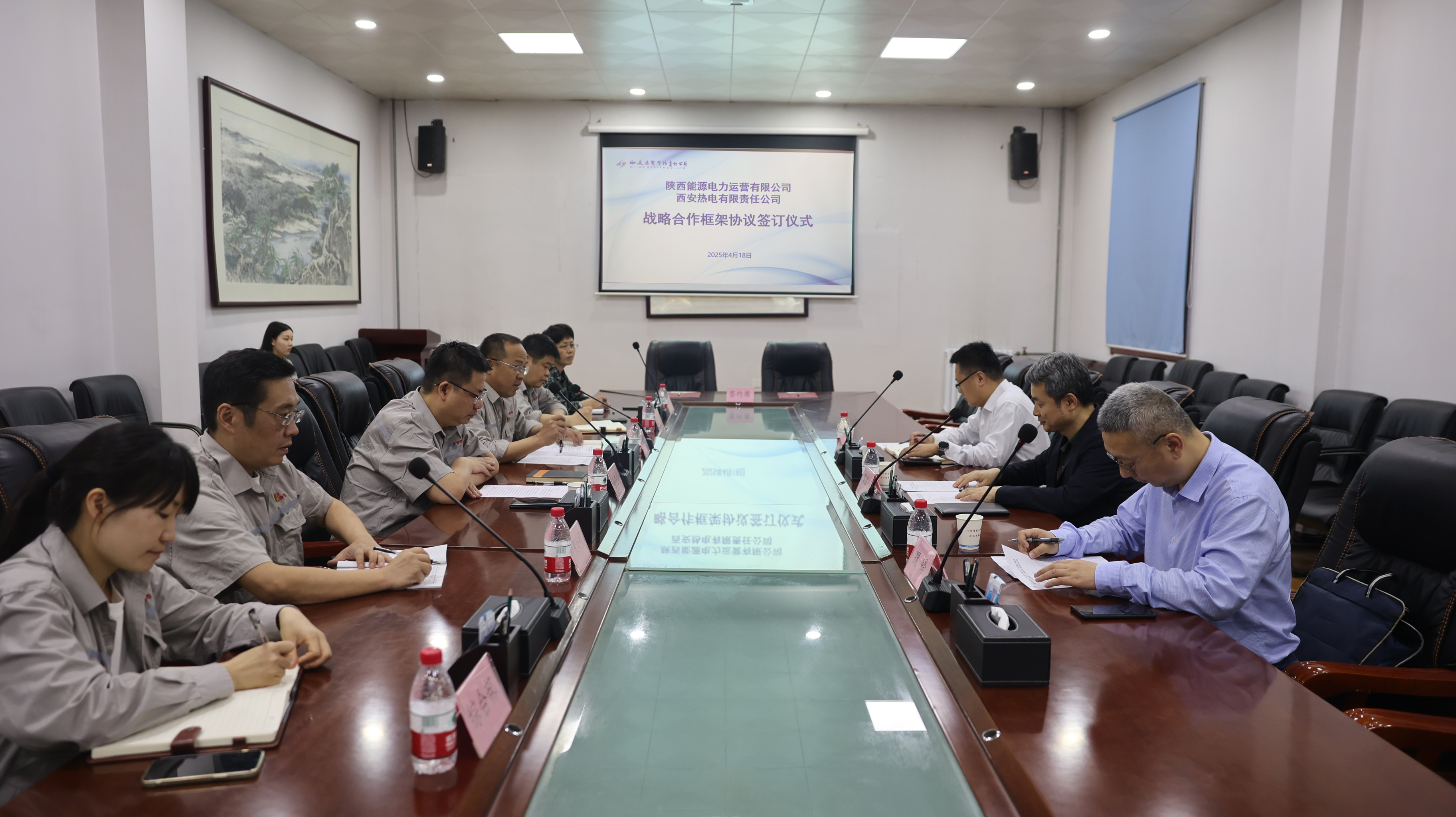 4月18日,公司与西安热电举行战略合作协议签订仪式。西安热电党委副书记、总经理孙珏龙,公司党委副书记、总经理雷喜鸣及双方相关部门负责人出席签约仪式。