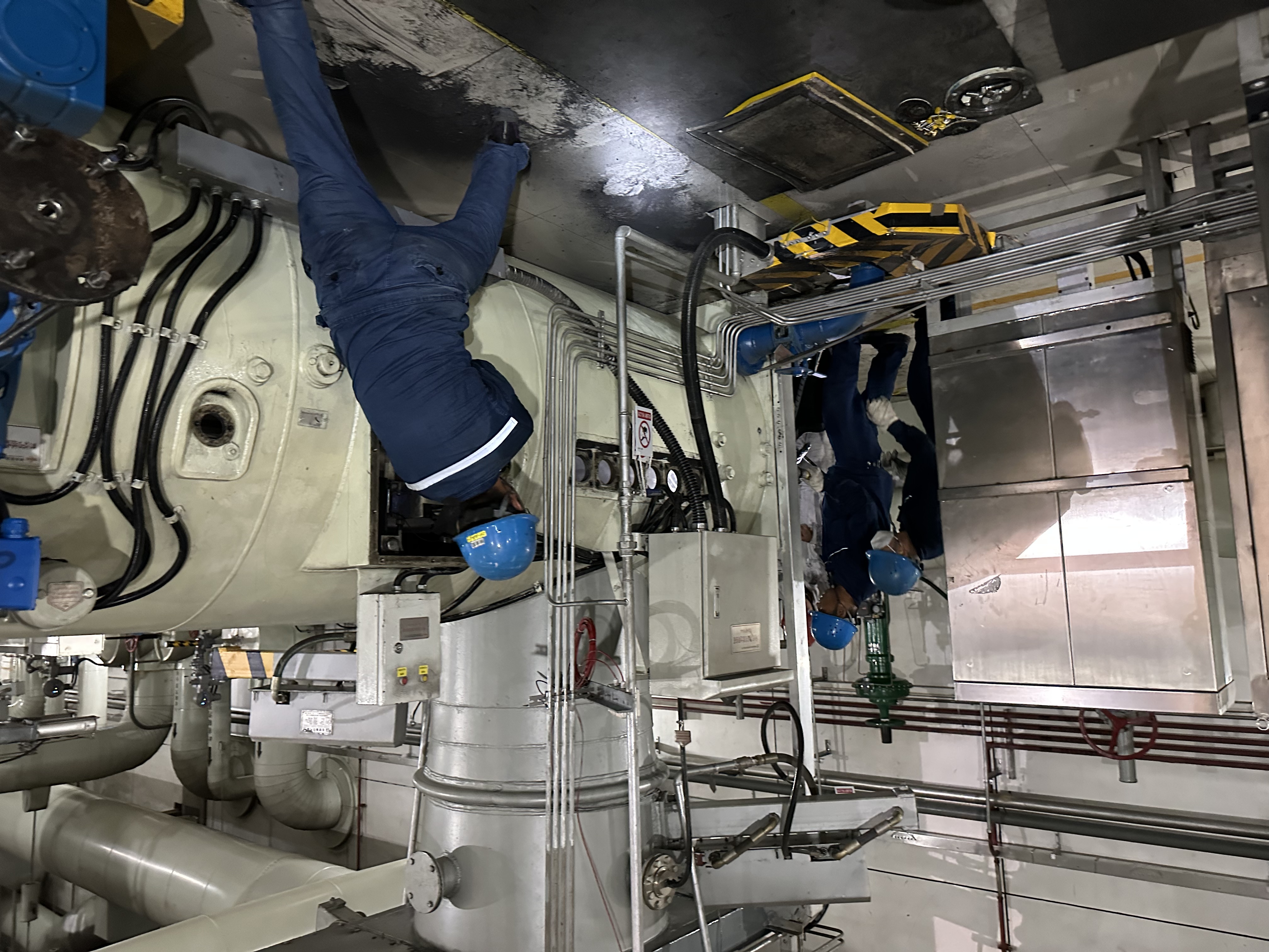 27日清晨,决战全面打响!皮带更换、脚手架搭设、衬板修复、磨煤机检查多线同步推进。在现场负责人指挥下,全员展现出极高专业素养与战斗意志,4小时完成新皮带更换,3.5小时搭设原煤仓脚手架,6小时完成5平方米衬板修复焊接。