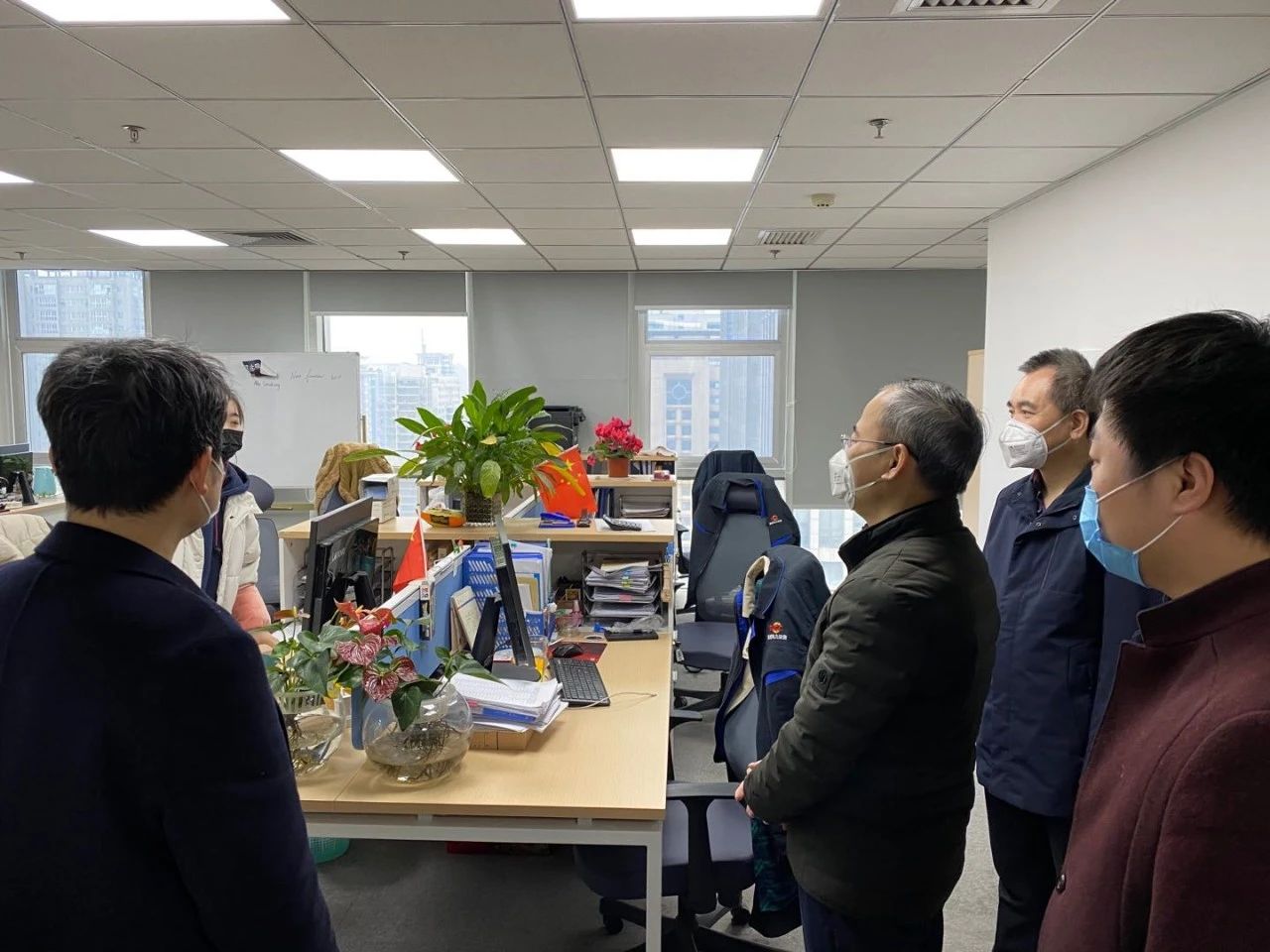 检查组一行先后来到公司大厅测温点、防疫物资储备间、办公大楼等重点消杀区域,详细了解人员登记、防疫物资储备及专项应急预案等疫情防控工作开展情况。