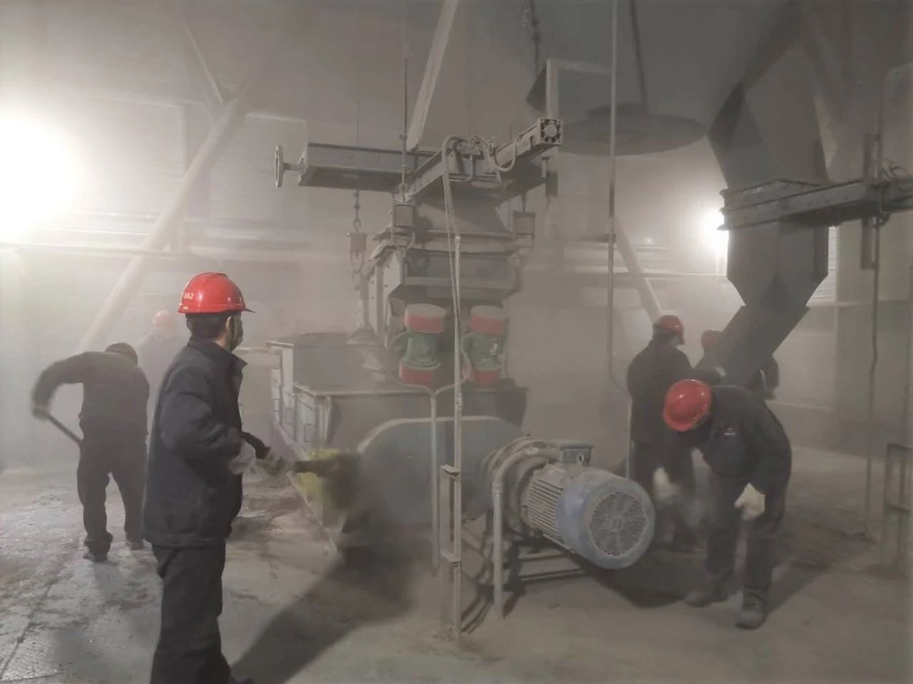 清扫开始前,大家或手执扫把、或肩膀铁锨,个个全副武装;清扫过程中,或挥锨清灰、或蹲身擦拭,人人干得热火朝天。濛濛春雨中,每个人都干得浑身冒汗,奋战在渣仓上的十几位同志尤为辛苦,个个都灰头土脸。