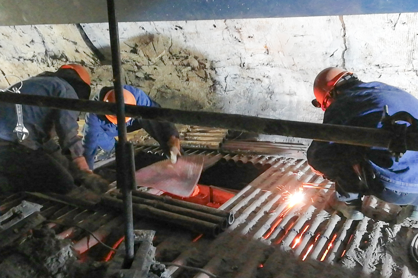 近日,金属试验中心兵分两路,在完成#5炉再热器取样管、顶棚炉过热器等焊接工作的同时,全力投入“#6炉水冷壁前墙下集箱出口管更换”自营项目。截止目前,中心人员加班加点,两日割管100余根,为后续更换工作的正常开展争取了宝贵的时间。