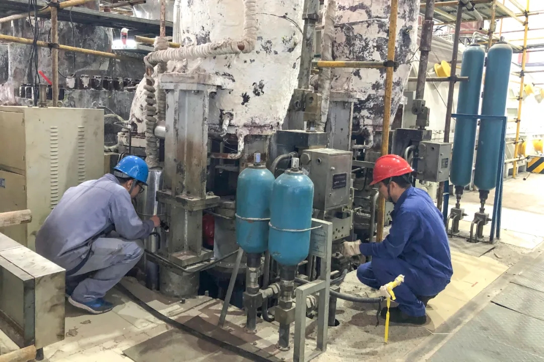 检修现场,在起重人员的指挥下,在两台行车的配合下,转子一寸一寸缓缓向外移动。此刻,从A级检修开始以来,24小时坚守现场的机务队主机班人员正全神贯注,或守在转子两侧精心维护、或钻入发电机内认真观察动静间隙,每一项工作都一丝不苟。