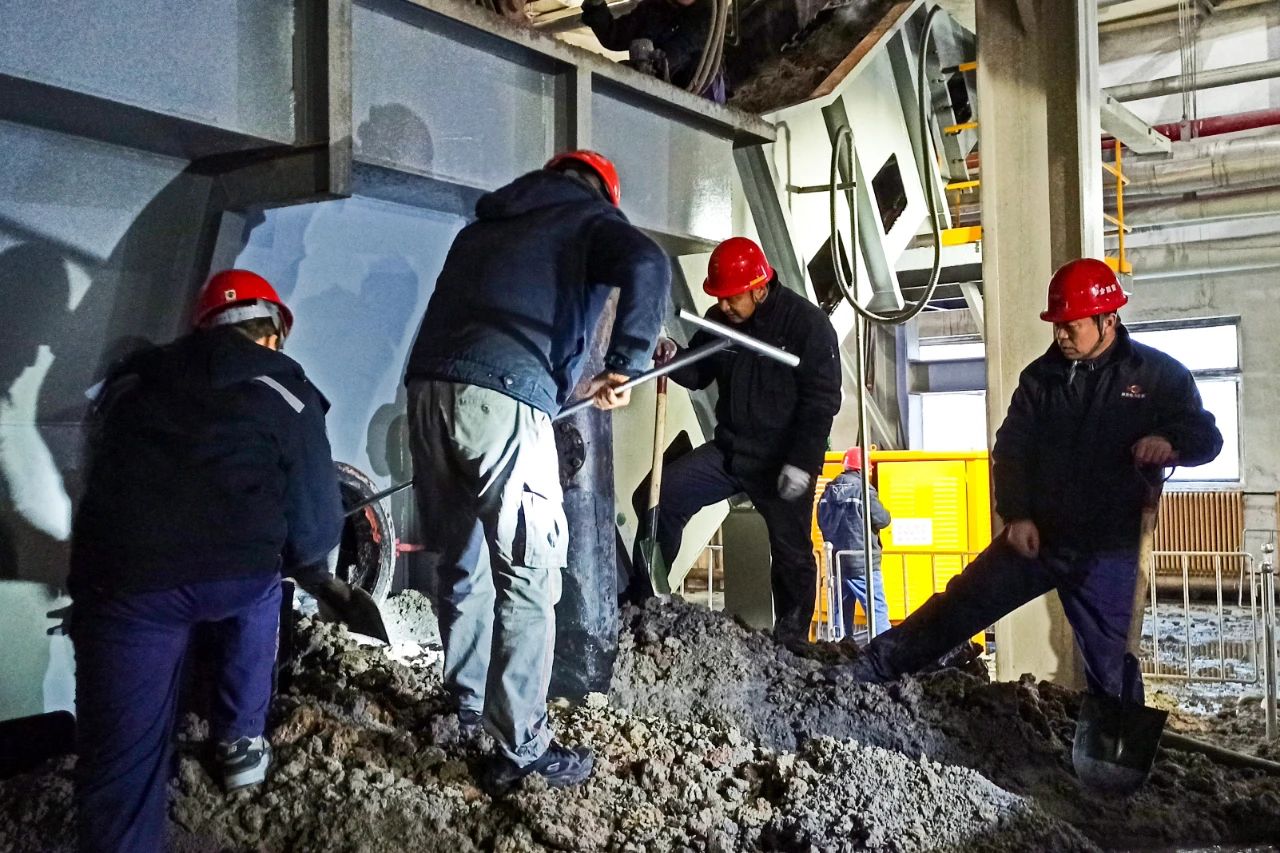 急关头,清水川项目部立即出动灰硫二班及项目部全体管理人员投入清渣工作。零下十几度的室外冷风刺骨,室内却是一片热火朝天的大干场面,铁锨、耙子、捅条,“十八般”清渣工具全部排上用场,䦆挖、手刨、水冲,能想的办法都用上,大家干得满脸灰尘、汗流浃背,却一刻也不停歇。